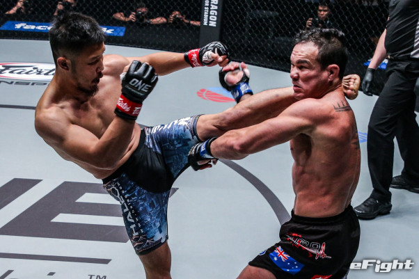 豪快なハイキックを当て込んでいく徳留、ONE参戦後初勝利を収めた