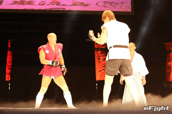 いら立つホンマンがカモンジェスチャーでロッキーを挑発