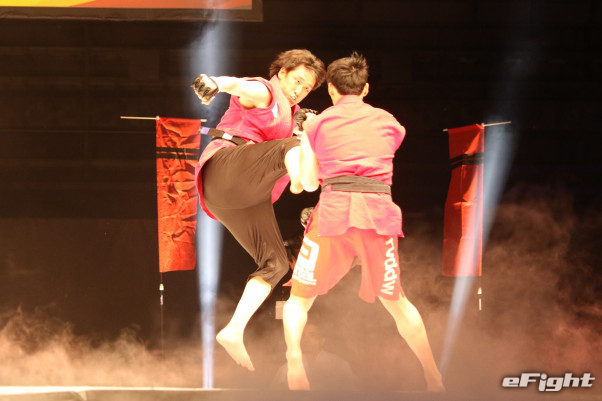 ダイナミックな攻撃を繰り出す大ももち(左)