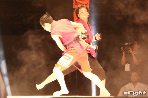 酔いを感じさせない軽いフットワークを見せる今野(左)