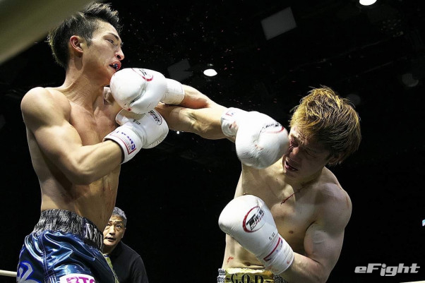 小巻海斗(右)が2度のダウンを奪ってバンタム級暫定王者に