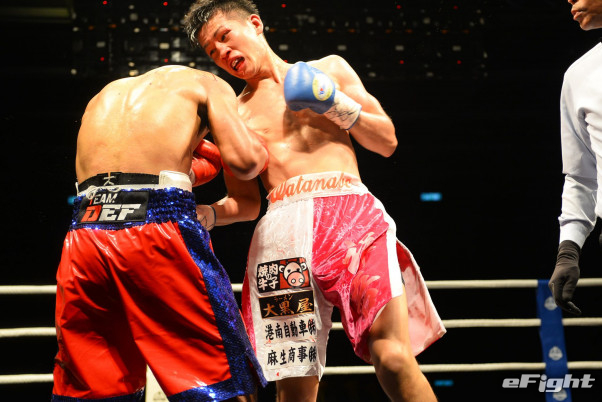 ボディブローで攻める山本祥吾、TKO負けを喫したものの、そのファイトスタイルで沸かせた
