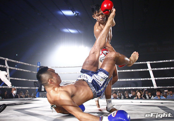緑川の蹴り足をキャッチし、軸足払いで鮮やかに転倒させるクンスック