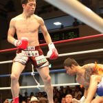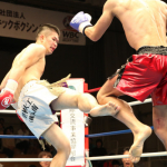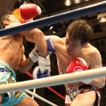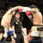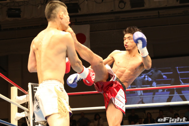 野津(右)のハイキックが鈴木のアゴにヒットしダウンを奪う
