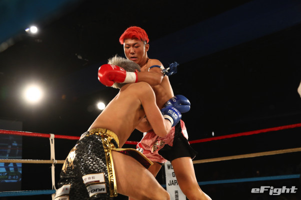 龍華が1R、連打で鈴輝からステンディングダウンを取る