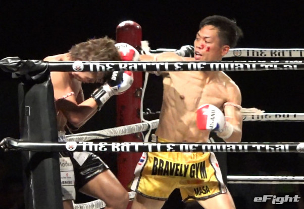 MASA(右)が後半ラウンド圧力とヒット数で上回って判定勝利、ベルトを巻いた