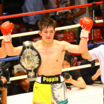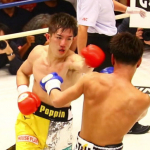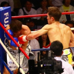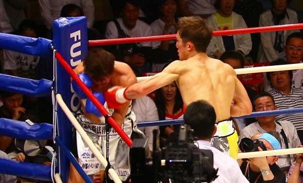 最後の左ストレートが決まりレフェリーが試合を止めた