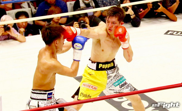 井上浩樹は前手となる右ジャブ、右ストレート、右フックを多用しつつ、左ストレートに繋げるTKO勝利を飾った
