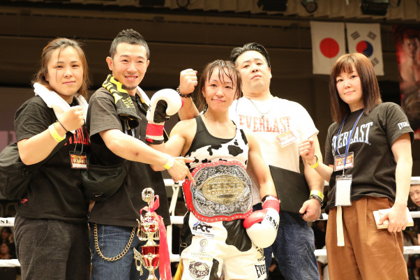 念願のRISE QUEENを手に入れた紅絹はチームメイトと喜びを分かち合う