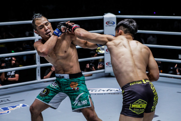 デソン(右)のプレッシャーに得意のグラウンドに持ち込めない江藤(左)