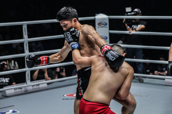 パンチの手数はズィー(手前)が勝り、ラフなパンチが秋元をとらえる