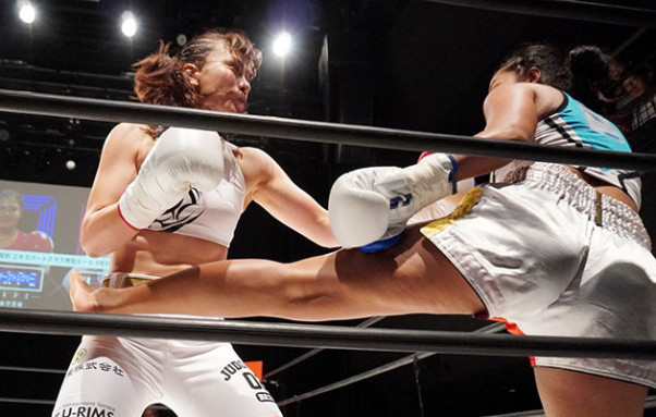 ペッターピー(右)をリングサイドに追い込む未奈