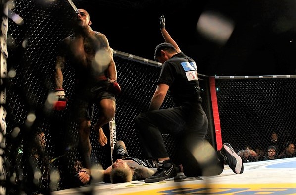 早々にマウントを奪うと肩固めで金太郎を絞め落としたシウバ