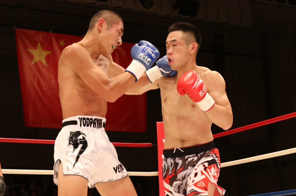 中野(左)とWLF王者ポンフェイが激しく打ち合う