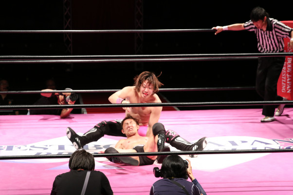 両腕クラッチ式ドライバーで背中から叩きつけられ敗北したなべ