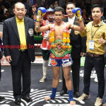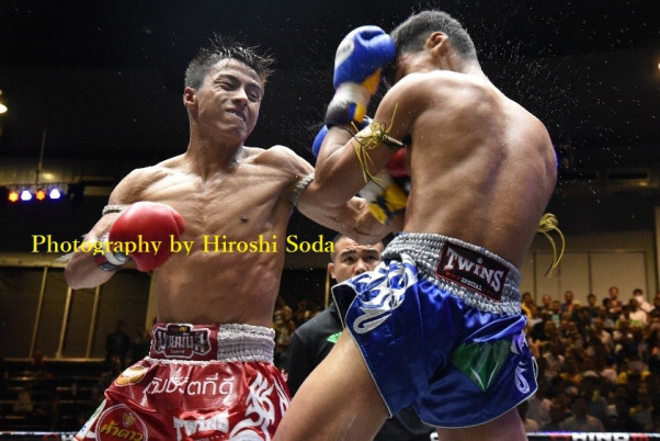 石井(左)がコンビネーションで攻めるもムエタイのポイントをとれず