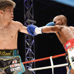 田中はボディと顔面を上下打ち分け、ボディで4度のダウンを奪いV2達成した