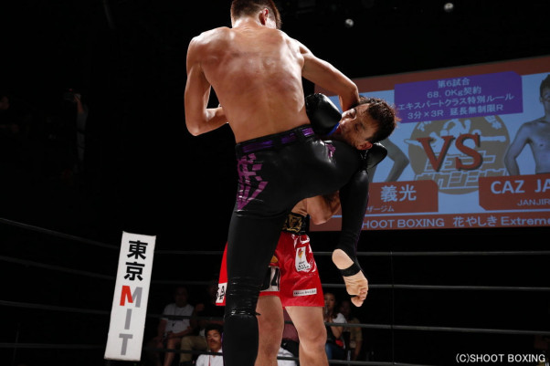 ヒザ蹴り連打で攻めていく村田
