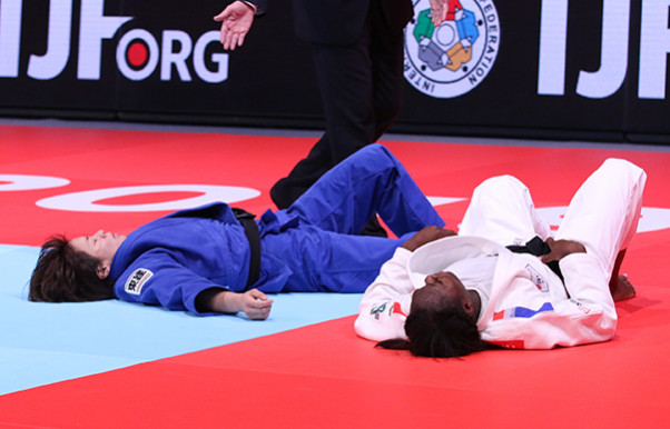 11分の死闘を演じた両者は決着後にしばらく仰向けに