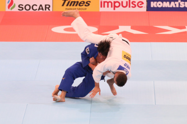 4回戦、綺麗な背負い投げで一本勝ちする向