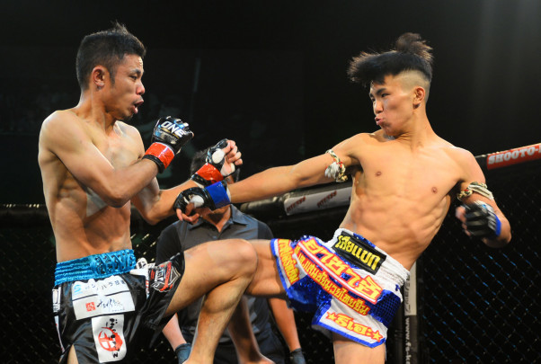 17歳の朝陽(右)がベテラン・薩摩に1RKO勝利