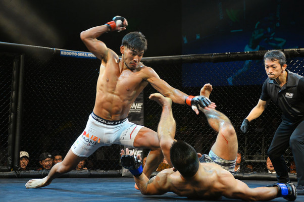 倒れたアキラに鉄槌を見舞おうとする岡野