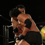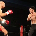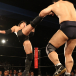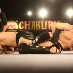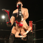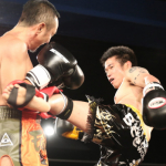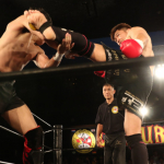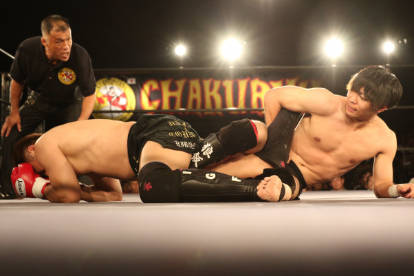 "和製ヴォルク・ハン"の異名を持つ飯塚(右)は多彩なグラウンド技術で天田を苦しめる