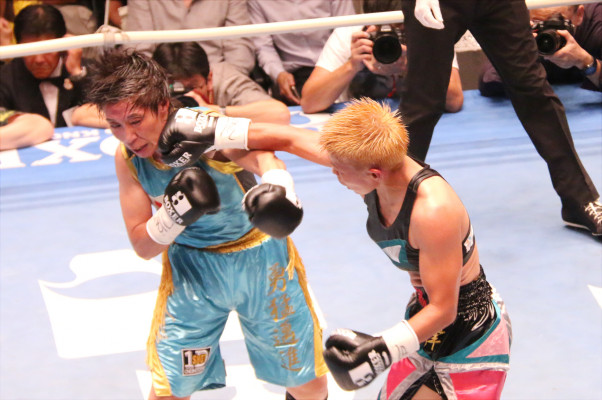 池山(左)との激しい打ち合いの中で花形の右ストレートがヒットする