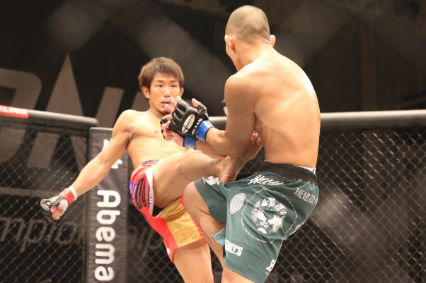 岡田(左)は右ミドルを中心に試合を組み立て、安藤の動きをコントロールする