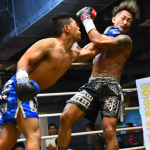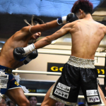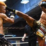 般若(左)にバックブローを見舞うバズーカ(右)
