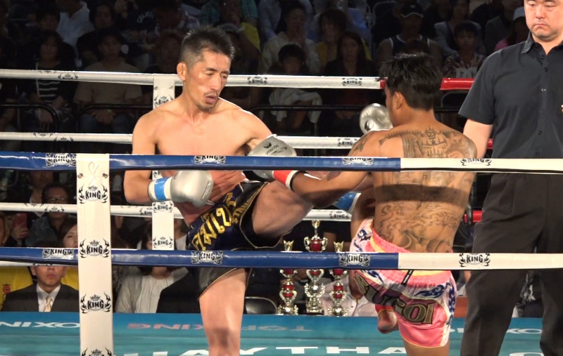 松崎(左)はパンチとミドルで積極的に攻めた