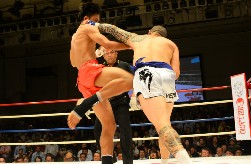 ゲーの蹴りにパンチを叩き込むサンタナ
