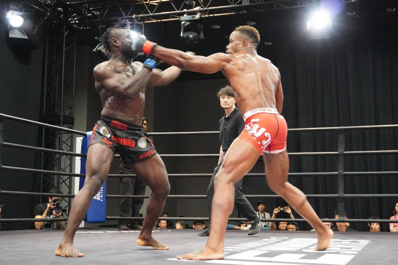 最終ラウンドにモリス(右)はリードジャブからのコンビネーションで追撃するが間に合わなかった