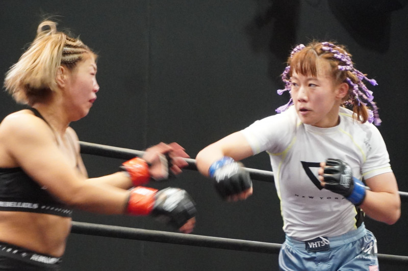 ソユル(右)のパンチ技術がSARAMI(左)に勝り主導権を握る