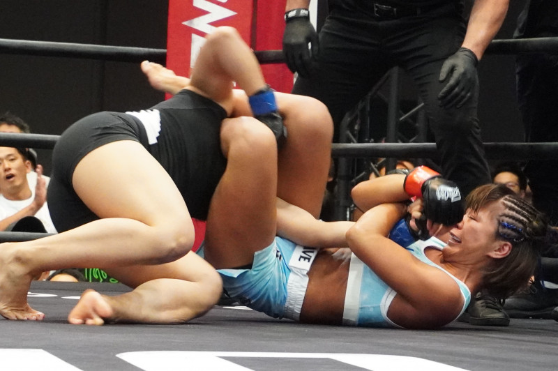ONE参戦中の鈴木隼人を夫に持つ鈴木(右)が腕ひしぎ十字固めで一本勝ち