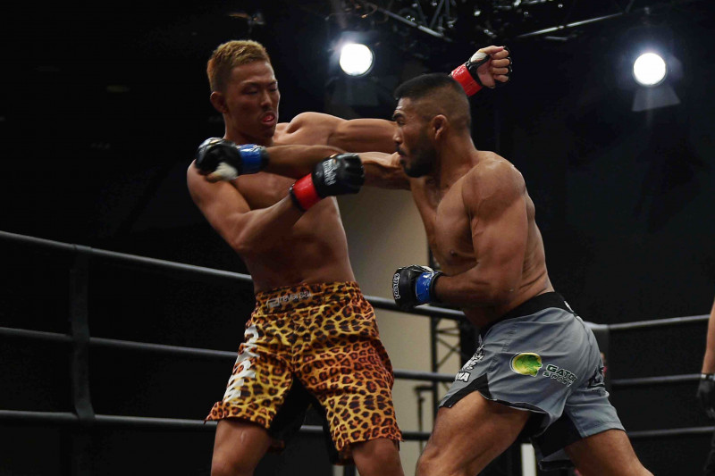山下(左)はテイクダウンから三角締めを鮮やかに極められ一本負け