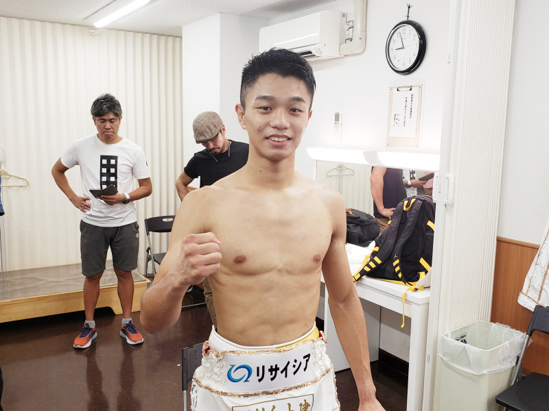 被弾が少なく、試合後は無傷の笑顔でガッツポーズを見せる中谷