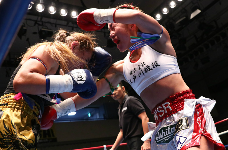 魔由美(左)との激闘を制して新王者に輝いたYAYA(右)