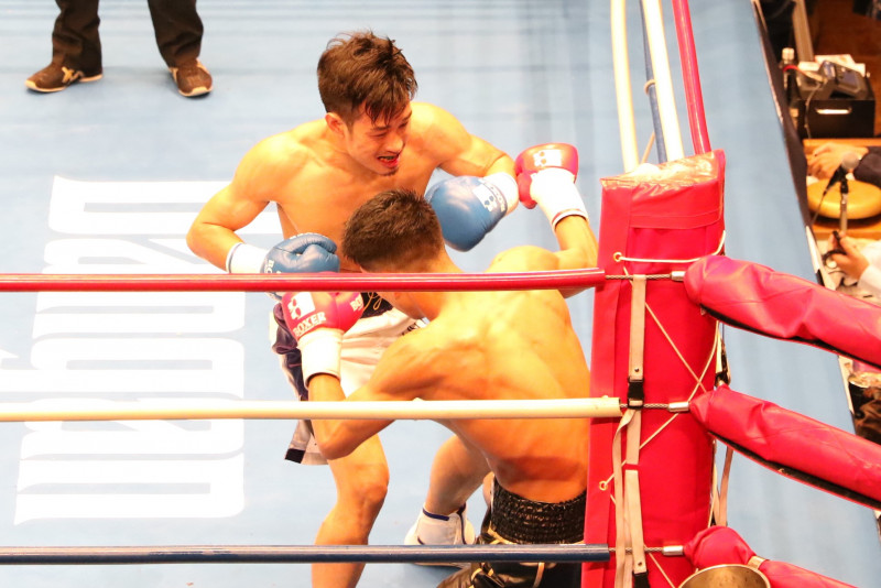プレッシャーをかけた伊集(左)が先制のダウンを奪い押し切るかに見えたが……