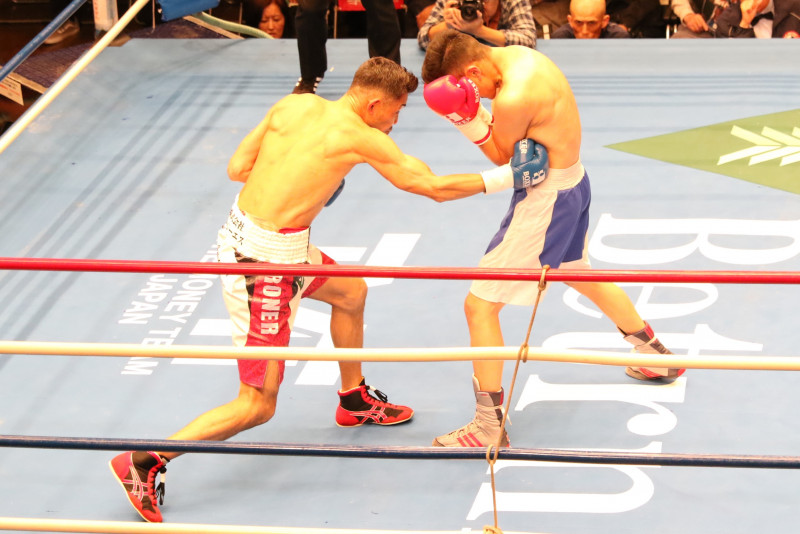 コツコツとボディを積み重ねた高畑(左)が判定勝利