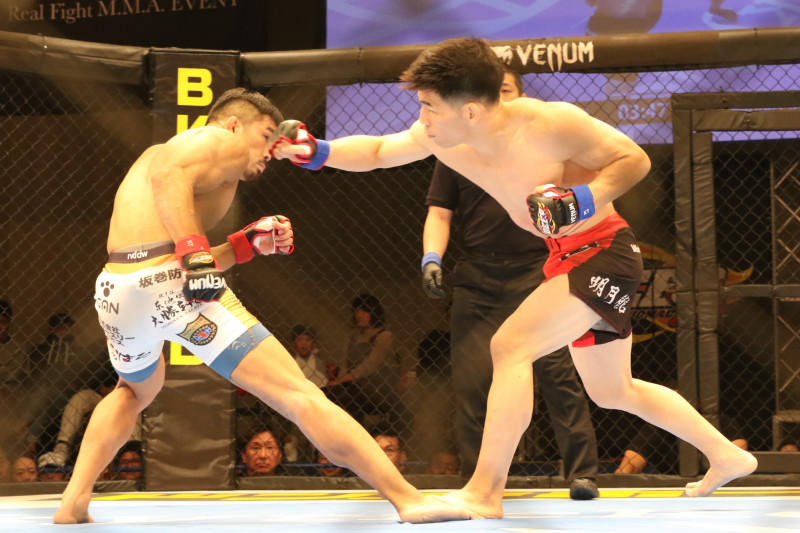 長倉(右)はパンチからのタックルでテイクダウンを狙いに行くが、決定的な機会を作ることはできなった