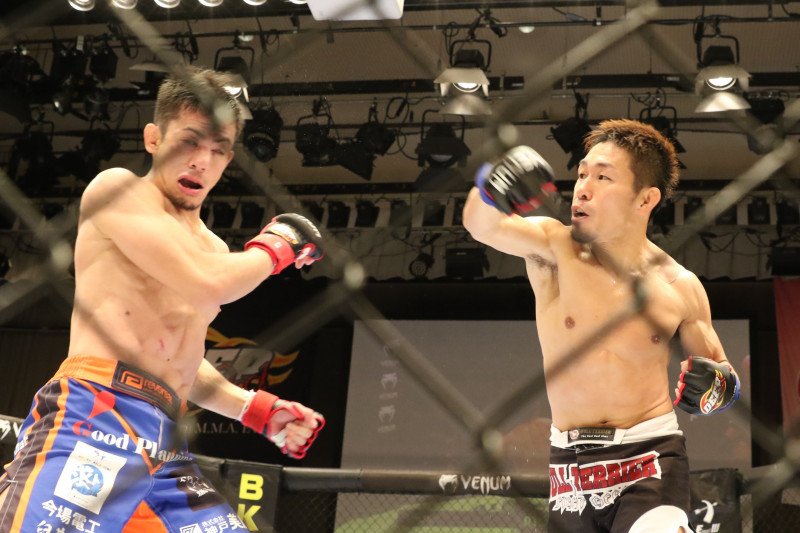 昇侍(右)が釜谷のタックルに苦しむも最後は打撃でフィニッシュ