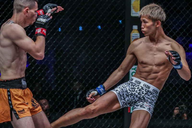 1R早々から打ち込んだ内藤の右カーフキックでセレピソス(左)は足にダメージを負う
