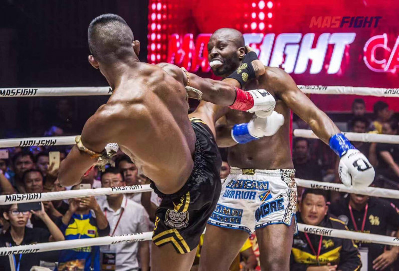 ブアカーオのハイキックがクリーンヒット、これでダウンを奪った