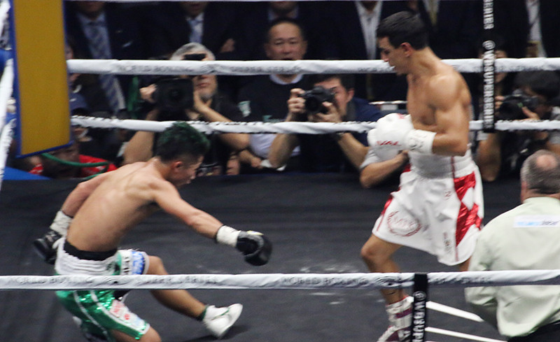 ウバーリの左フックで井上が倒れる瞬間