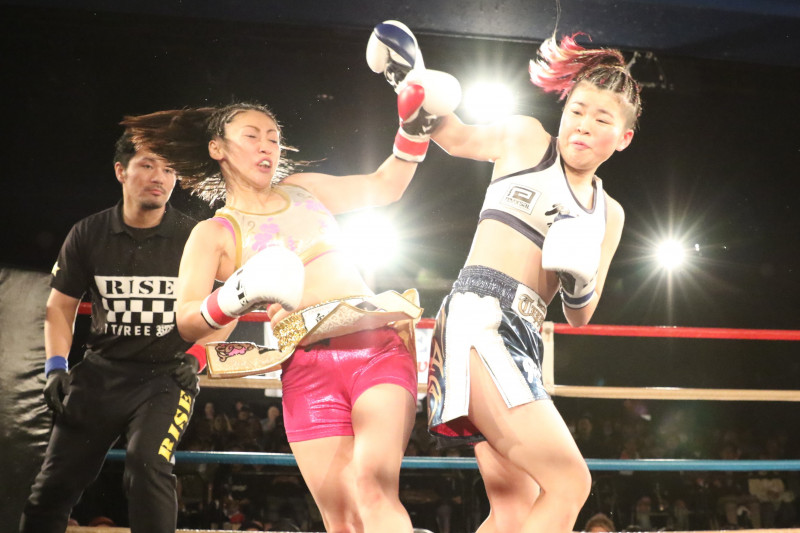 激しい打ち合いを見せた那須川・百花の両者は同時にバックハンドブローを打ち合うシーンも