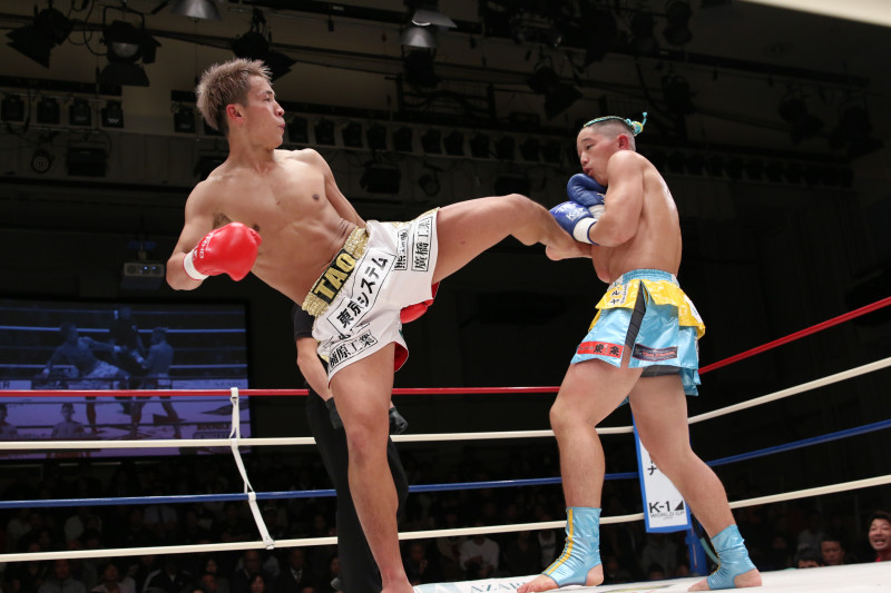 鷹大(右)の左の蹴りが効果的であった