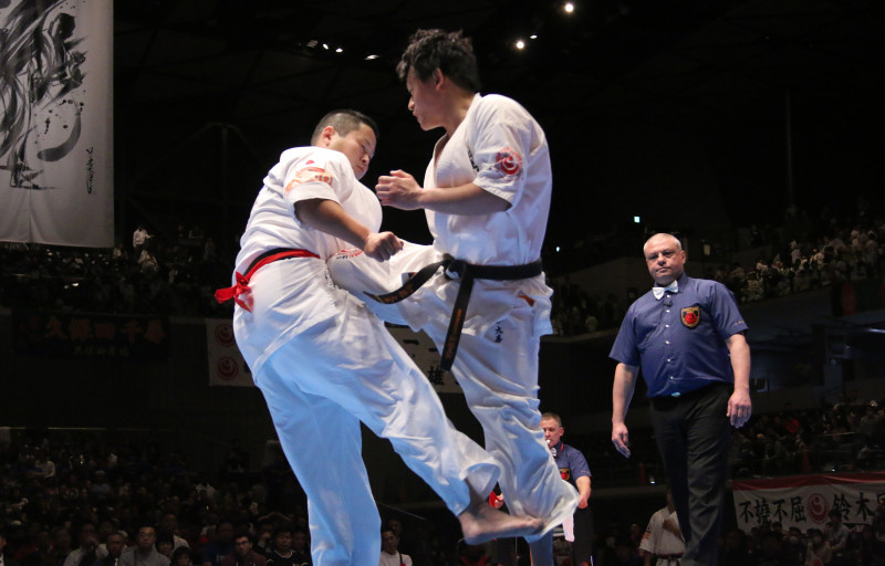 加藤(右)は落合の下段蹴りにヒザ蹴りや突きをカウンターで合わせ接戦を制した