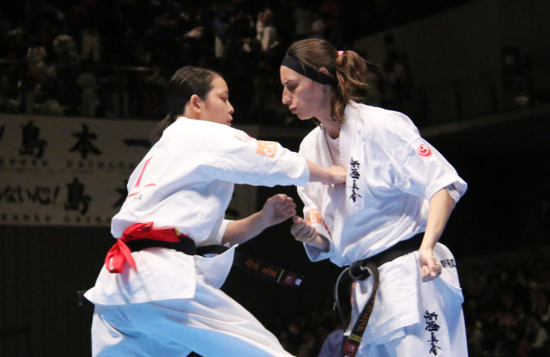 接近戦で突きを出し続ける南原(左)