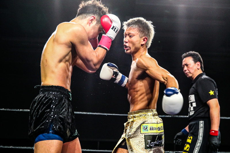拓也(右)が津田鉄平に勝利、リベンジを果たした